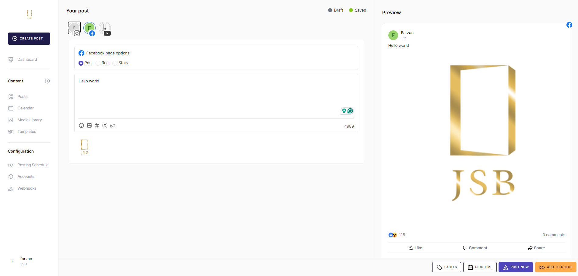 From scheduling to publishing, JSB offers a suite of tools designed to streamline your social media management. Dive in and discover the power of JSB.